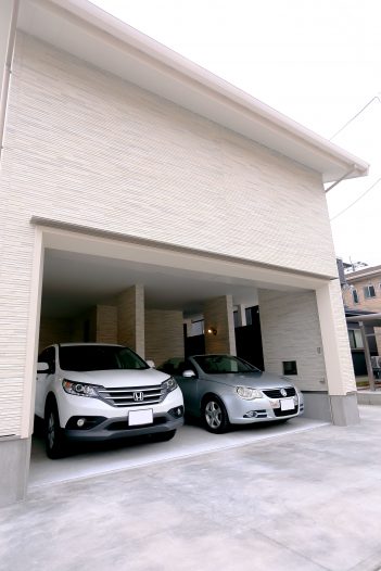 寒さと雪掻きが苦手なご夫妻は、打合せ当初から「インナーガレッジ:車2台」と「暖かい家」を希望されていました。タイル貼の玄関の床を含めた全フロアーに、温水式床暖房を設置し家全体の「温度のバリアフリー」を実現させている。将来必要な子供たちの自転車置き場を確保したインナーガレッジは、玄関ポーチと裏口に通じるようにし、使い勝手の良い動線計画とした。