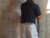 本日から、外壁面の断熱材:セルローズファイバー吹き込工事の開始となりました。 厚みは、柱サイズの120mmとなります。 まずは、専用のシートをタッカー(ホッチキスのようなもの)でまんべんなく間柱等に 張ります。 ...この記事を読む